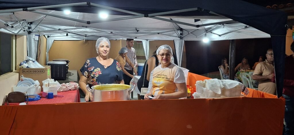 Após a missa, os participantes se dirigiram ao centro paroquial para um animado leilão em prol da paróquia. O evento foi marcado por lances descontraídos e muita interação, com os vereadores e funcionários da Câmara participando ativamente dos embates, gerando risadas e momentos de alegria. Comidas típicas, como canjica e bolos, foram apreciadas por todos, resgatando as tradições juninas que tornam a festa tão especial.