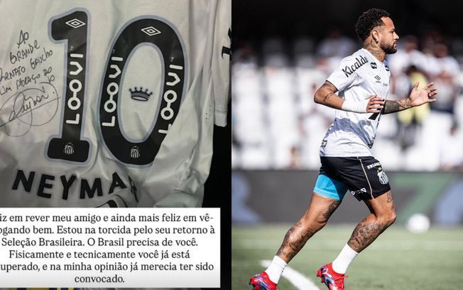 Agradecendo o presente, o comandante da equipe carioca escreveu que está torcendo pelo retorno de Neymar à Seleção e que o Brasil precisa dele. Na opinião de Renato, o camisa 10 do Santos já merecia ter sido convocado.