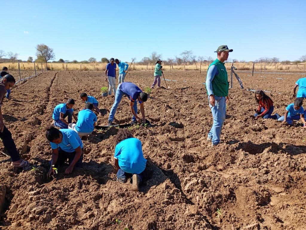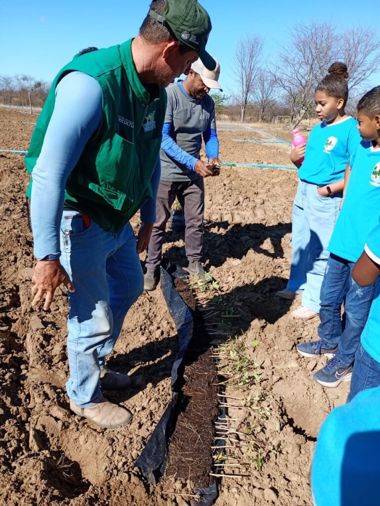 A atividade começou com uma palestra e aula teórica em sala, onde os estudantes aprenderam conceitos fundamentais sobre mandiocultura. Em seguida, os alunos partiram para uma aula prática no campo, participando ativamente do projeto de mandiocultura implantado na comunidade. A iniciativa proporcionou uma experiência prática e técnica, aproximando os estudantes da realidade agrícola local e reforçando a importância da agricultura sustentável.