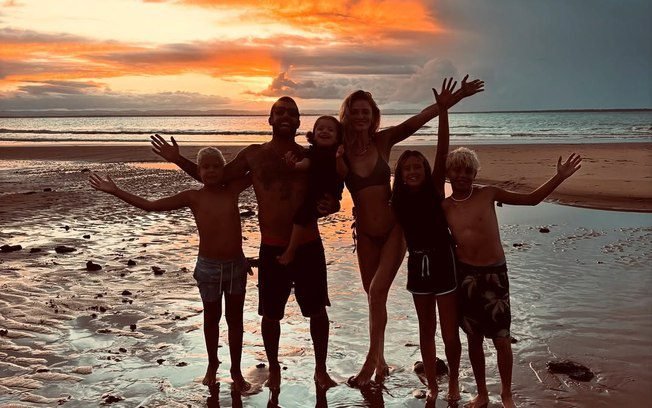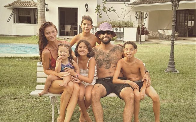Cintia com Pedro Scooby, sua filha e seus enteadosFoto: Reprodução/@pedroscooby