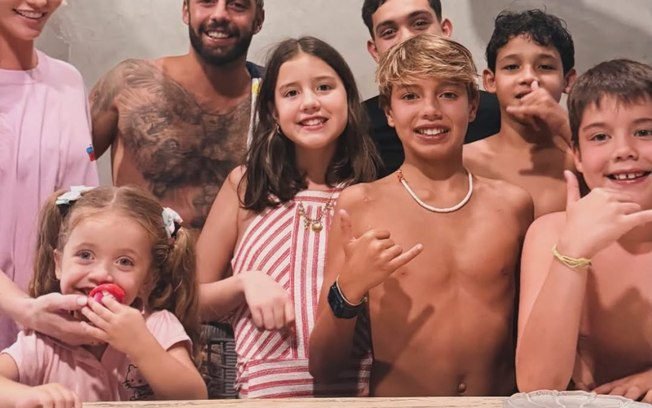 Na publicação de Cintia, compartilhou uma foto ao lado de Dom, Pedro Scooby e coleguinhas do garoto, durante uma festa surpresa de aniversário, ocorrida na terça-feira (25), promovida pelo surfista.