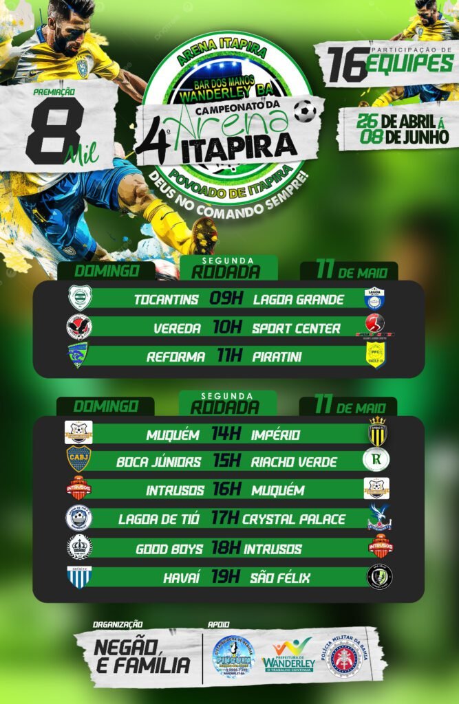 Neste domingo, dia 11 de maio de 2025, a Arena Itapira será palco da Segunda Rodada do Campeonato Itapira de Futebol, com uma programação repleta de jogos emocionantes. A bola começa a rolar logo cedo e promete agitar os torcedores com confrontos imperdíveis ao longo do dia. Confira a programação completa: