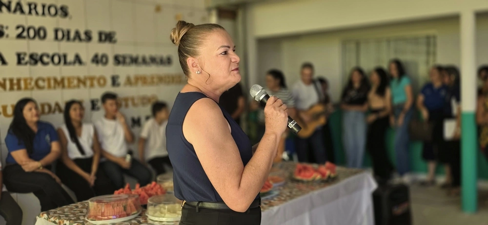 “Eu, como mãe do aluno que estuda nessa escola, primeira vez que eu estou vindo aqui, depois da reforma, achei muito aconchegante, bonita a escola. O pessoal fez com bastante carinho para que esses alunos que estão aqui hoje possam estudar, sentir no lugar de paz, de amor. Isso que a escola tá transmitindo, isso que os pais estão vendo aqui hoje, foi feito com muito carinho pelos profissionais dessa instituição.”