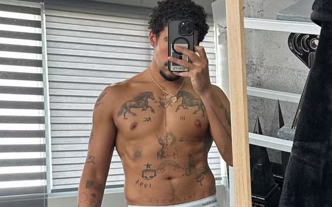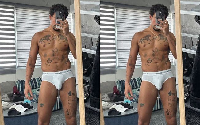 O cantor Bad Bunny, de 31 anos, movimentou as redes sociais nesta sexta-feira (23) ao publicar uma foto em frente ao espelho vestindo apenas uma cueca branca. O clique ousado gerou uma onda de elogios e comentários apaixonados entre os seguidores do cantor porto-riquenho.