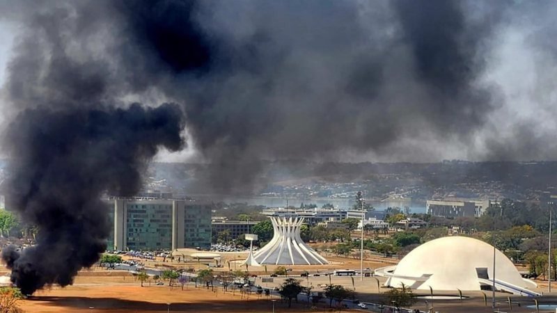 Enquanto o ministro do Supremo Tribunal Federal dava o seu voto, dois banheiros químicos foram incendiados nas proximidades do STF.