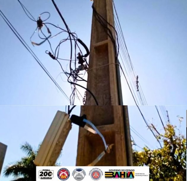 No local, a equipe policial flagrou o indivíduo cortando os fios de um poste. Com o suspeito, que já havia danificado a rede elétrica, foram apreendidos a faca utilizada no crime, um cachimbo para uso de entorpecentes e uma bicicleta.