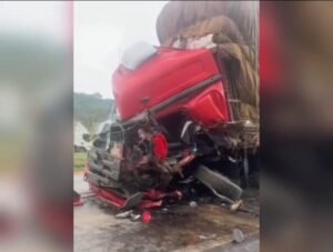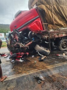De acordo com informações passadas à Polícia Rodoviária Federal que segue com a apuração, o acidente teria envolvido quatro caminhões, sendo dois baús, um guincho “pranchão” e um caminhão carregado com embalagens. A causa teria sido uma tentativa de ultrapassagem.