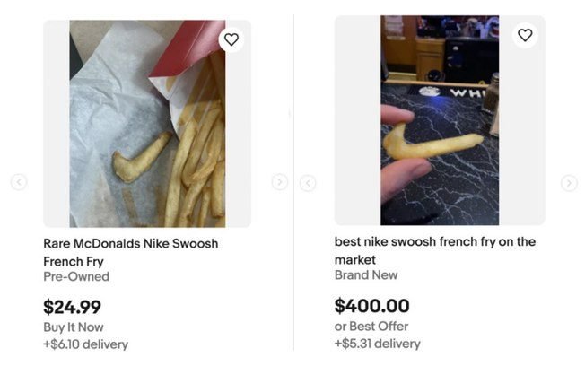 Uma nova “moda” está despertando a curiosidade — e o bolso — de internautas ao redor do mundo: batatas com marcas que se assemelham ao icônico símbolo da Nike, o famoso “swoosh”, estão sendo vendidas no eBay por valores que variam de US$ 24,99 (cerca de R$ 141,80) até impressionantes US$ 1.250 (aproximadamente R$ 7.089,81).