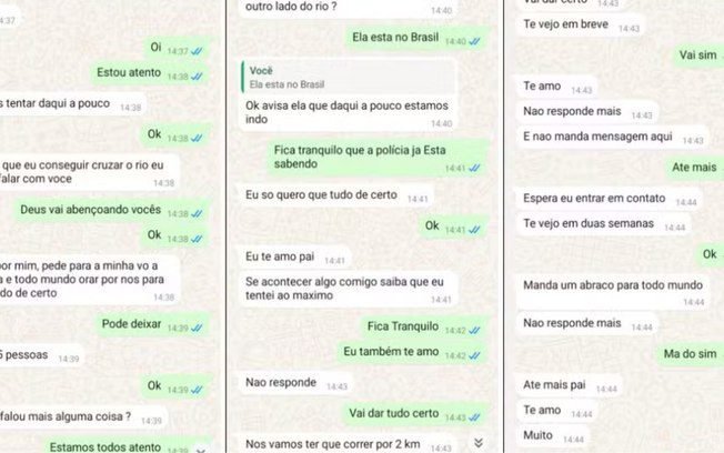 Mensagem de Phelipe para o pai no dia em que o grupo planejava fugir.Reprodução