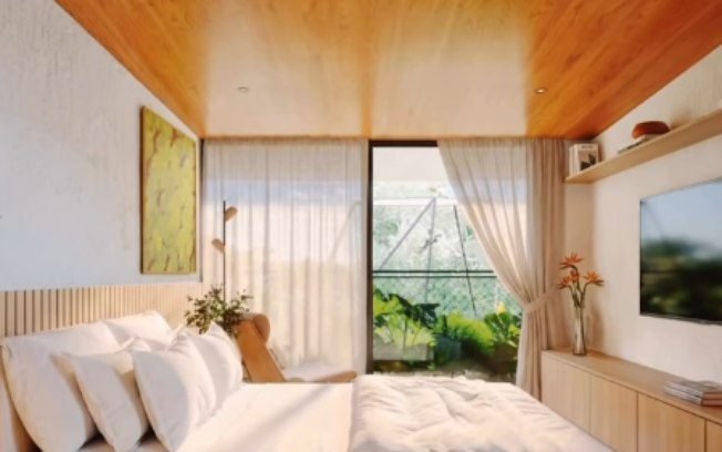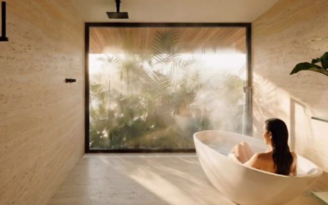 O ponto alto do quarto principal é uma banheira com vista panorâmica para a mata, que permite momentos de relaxamento em total sintonia com o verde. De acordo com a artista, a casa representa a realização de um sonho de infância focado no conforto de sua família. Confira as imagens do projeto da mansão: