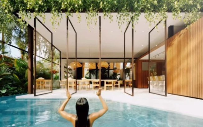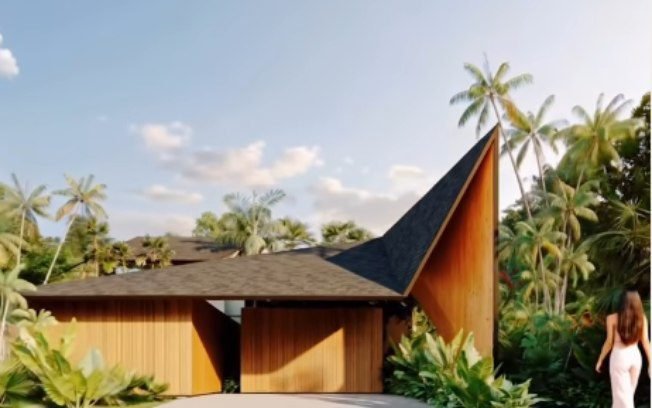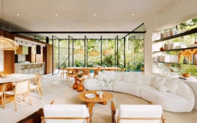 O projeto, dos arquitetos Vitor Pessoa e Laurent Troost, destaca-se por uma estrutura moderna que privilegia paredes de vidro, garantindo que a floresta “entre” na casa através de iluminação natural e ventilação cruzada em todos os cômodos. A fachada é inspirada em uma maloca (habitação comunitária indígena). Já a decoração das salas é em estilo clean, com móveis brancos e em tom de madeira.