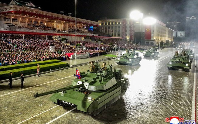 O governo da Coreia do Norte realizou neste sábado (11) um desfile militar em Pyongyang para comemorar o 80° aniversário do Partido dos Trabalhadores do país. Durante o evento, foi exibido um novo míssil intercontinental, conhecido como ICBM (veículo planador hipersônico e mísseis balísticos internacionais). O líder norte-coreano Kim Jong-un, particiou da cerimônia princial na capital.