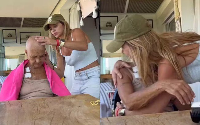 No registro, a veterana surge inicialmente com alguns fios, mas resolveu tirá-los. Depois de finalizar a tarefa, mãe e filha se abraçam. A assistente de palco do ‘Domingão’ compartilhou uma dedicatória à matriarca na legenda da publicação.