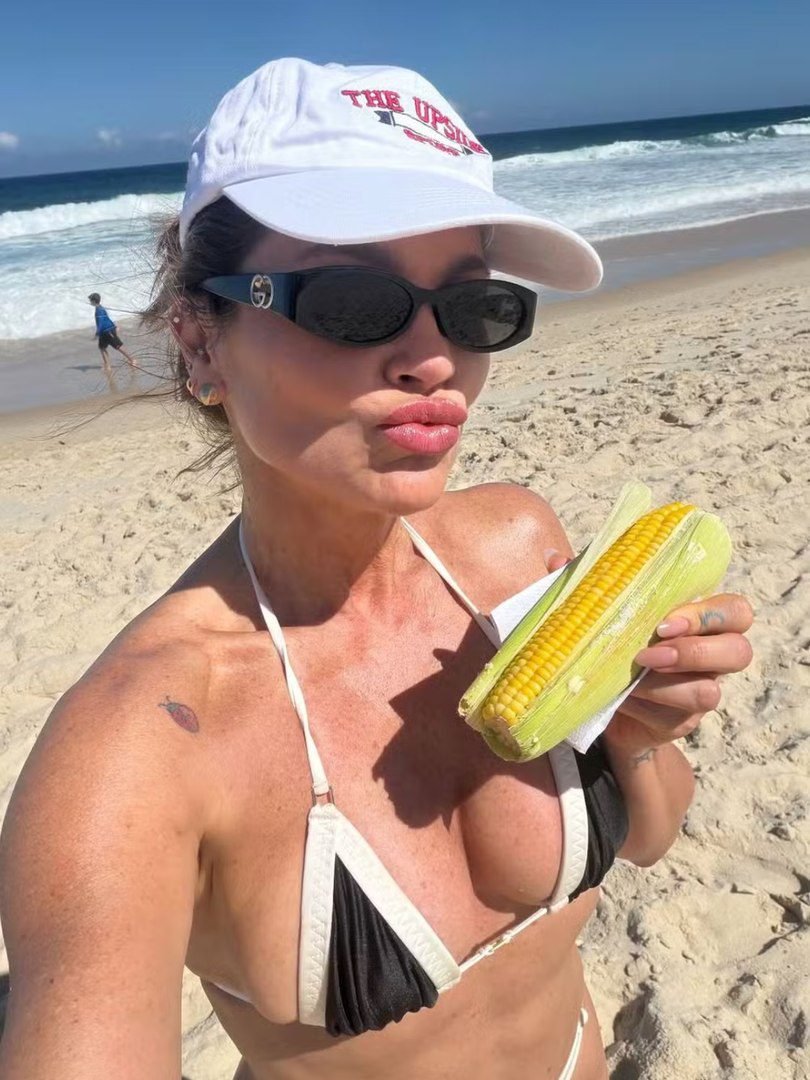 Além de destacar todo o seu corpo nas redes sociais, Flávia Alessandra ainda fez questão de mostrar para os fãs e seguidores que estava se deliciando com um milho verde, enquanto aproveitava o sol diante de um cenário paradisíaco à beira-mar.