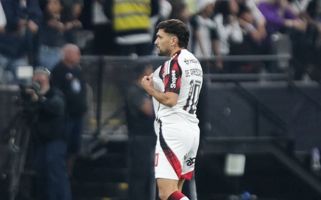 Porém, a vantagem não durou muito tempo e, aos 9, o Flamengo chegou ao empate. Samuel Lino recebeu dentro da área corintiana e achou Arrascaeta, que bateu no cantinho para igualar o marcador.