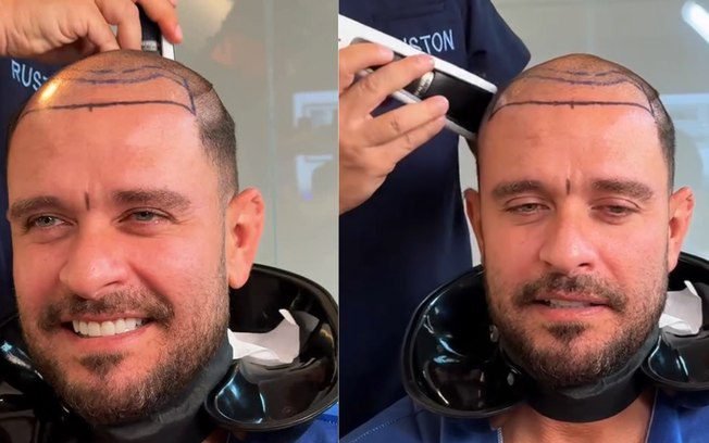 No vídeo, Diogo surge exibindo marcações no couro cabeludo, típicas do procedimento. Além disso, ele está vestindo um traje cirúrgico, enquanto é atendido por um profissional de jaleco. A postagem ainda conta com comentários de internautas que pediam a volta da careca, marca registrada do sambista.