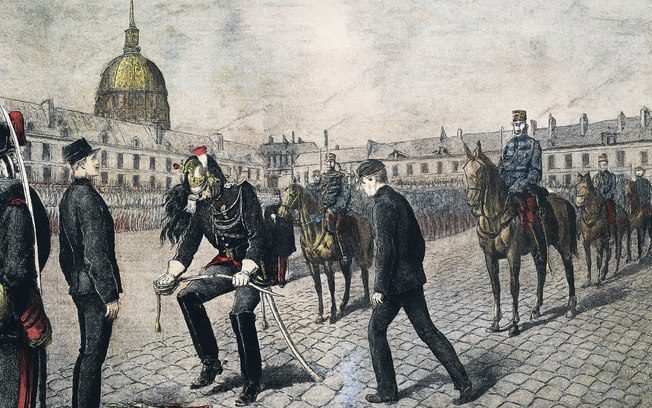Dreyfus foi submetido a uma infame cerimônia pública em que foi destituído de sua espada, insígnias e patente. Foi enviado para uma ilha na Guiana Francesa para cumprir prisão perpétua.