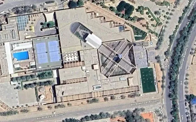 Complexo da embaixada dos EUA em Riad, na Arábia Saudita Reprodução/Google Maps