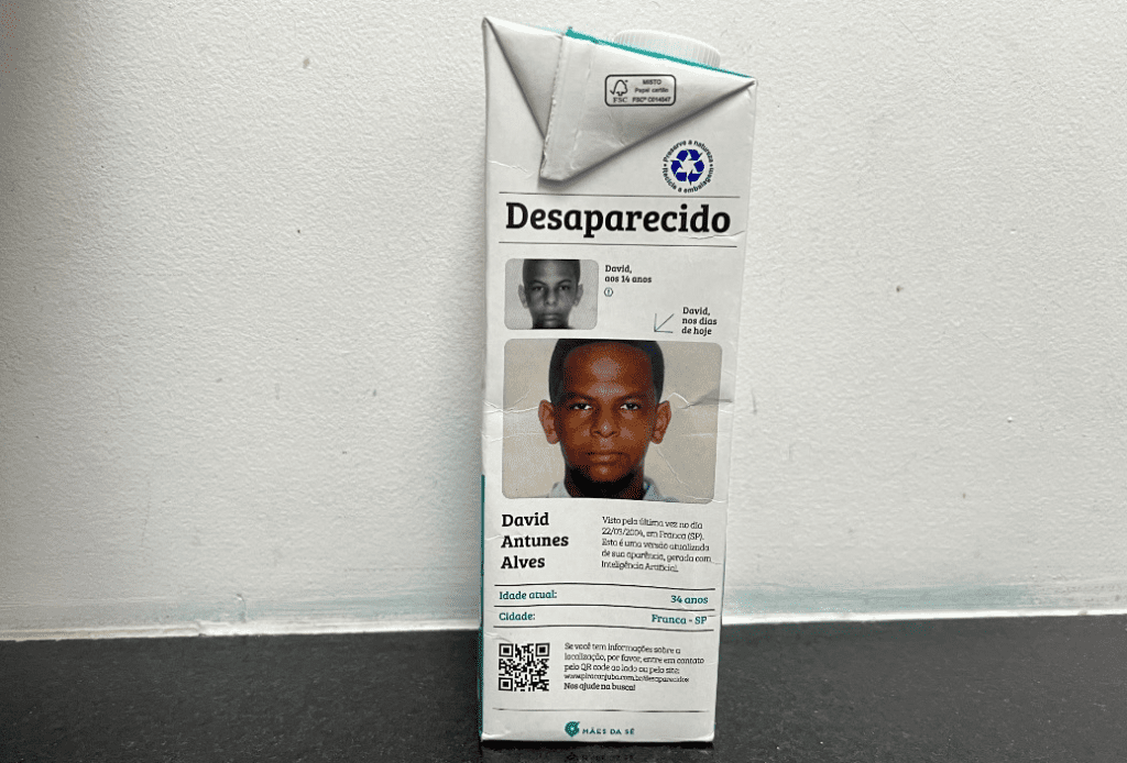 Nas embalagens de leite da marca, fotos antigas de desaparecidos são recriadas com a aparência que poderiam ter hoje, inserindo os rostos em cenas do cotidiano. A tecnologia permite que milhões de pessoas, ao adquirirem os produtos, tenham acesso às imagens e possam contribuir com informações sobre os casos.