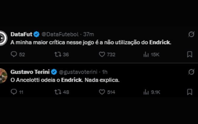 Durante a partida, foram utilizados três jogadores que podem ser considerados concorrentes de Endrick. Utilizado anteriormente como camisa 9, Matheus Cunha iniciou o confronto como titular, mas atuando como um meia-atacante. Vini Jr. foi o jogador que mais atuou centralizado entre os que começaram o jogo.