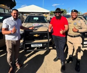 Na tarde desta sexta-feira, 25 de julho de 2025, o município de Wanderley recebeu uma nova viatura para a Polícia Militar, em cerimônia realizada em Cristópolis. A entrega foi acompanhada pelo prefeito Camargo Crisóstomo e pelo vice-prefeito Gilberto Reis, marcando um importante avanço para a segurança pública local.