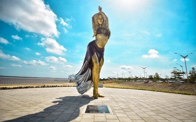Shakira: Uma estátua de bronze de 5 toneladas e 6,5 metros de altura da cantora Shakira chama atenção na cidade de Barranquilla, na Colômbia, onde a artista nasceu.