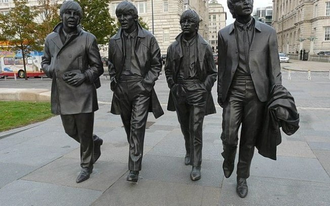 Beatles: Aliás, Os Beatles (John Lennon, Paul McCartney, George Harrison e Ringo Starr) formam uma icônica estátua de bronze em Liverpool, na Inglaterra.