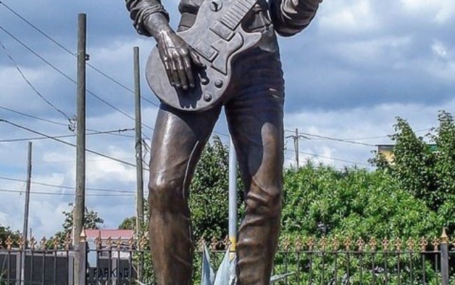 Elvis Presley: Falecido em 1977, o Rei do Rock também tem muitas estátuas pelo mundo. Uma delas é encontrada em Memphis, Tennessee, EUA, onde artista viveu.