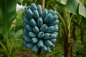 Imagem gerada por IA De tempos em tempos, a internet se põe a falar sobre uma suposta “banana azul”. Mas será que ela existe mesmo? Sim, existe! A banana blue java, conhecida popularmente