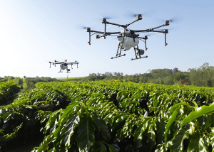 Drones estão sendo utilizados para aplicação do produto no Espírito Santo. Foto: LithoPlant A Embrapa, em parceria com a Litho Plant, desenvolveu um protetor solar para plantas que reduz a