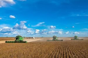 Colheitadeiras de soja em fazenda no oeste da Bahia. Foto: Jefferson Aleffe O andamento da colheita da safra 2024/25 de soja segue acelerado nas principais regiões produtoras do país. De