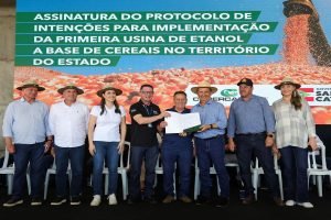 Foto: Roberto Zacarias/Secom SC O governador de Santa Catarina Jorginho Mello (PL) assinou um protocolo de intenções com a Copercampos para viabilizar a implantação da primeira usina de etanol à base de cereais