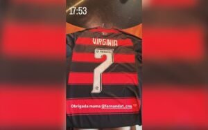 Mãe de Vini Jr. presenteia Virginia com camisa do FlamengoInstagram/@virginia No dia da final da Copa Libertadores entre Flamengo e Palmeiras, Virginia Fonseca entrou de vez no clima da decisão depois de ganhar