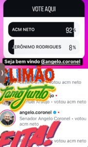 Ângelo Coronel escolhe ACM Neto em enquete sobre o próximo governador; veja print