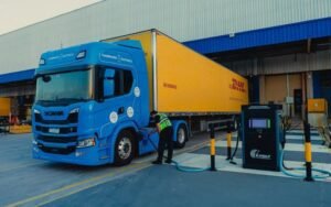 Caminhão elétrico em fase de testes.Reprodução/Juliana Bandeira/Divulgação A Rodovia Presidente Dutra terá o primeiro corredor logístico verde do país. A iniciativa foi apresentada durante a 30ª Conferência das Partes das Nações Unidas