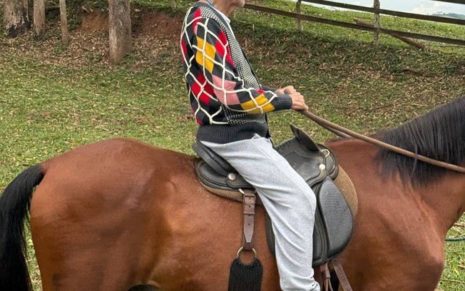 O cantor também andou a cavalo.Foto: Reprodução/@caetanoveloso