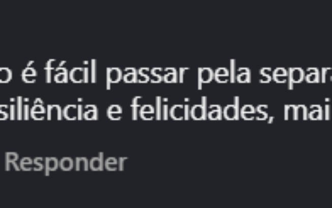 Outros seguidores demonstraram tristeza pela ruptura e desejaram força ao ex-casal. Comentários emocionados diziam: “Um casal que é referência de amor e construção de uma linda história, nos entristece em saber”, além de recados de apoio: “Não é fácil passar pela separação dos pais, mas a gente supera. Resiliência e felicidades, mainha”.