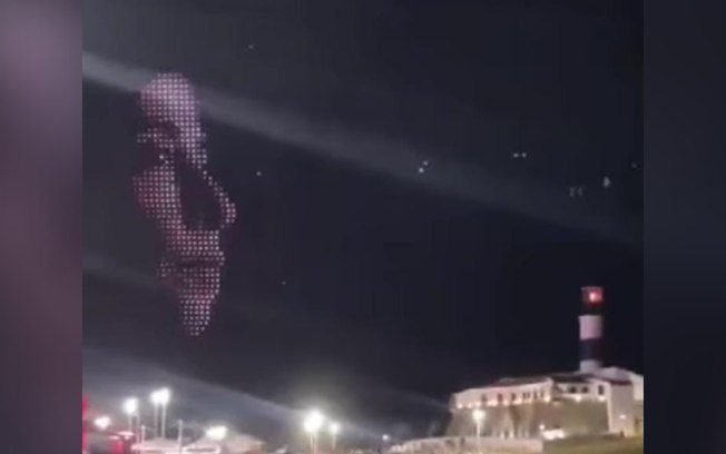 O céu de Salvador se transformou em um espetáculo na noite deste domingo (2), quando um show de drones iluminou o circuito Barra-Ondina com a imagem de Fernanda Torres.