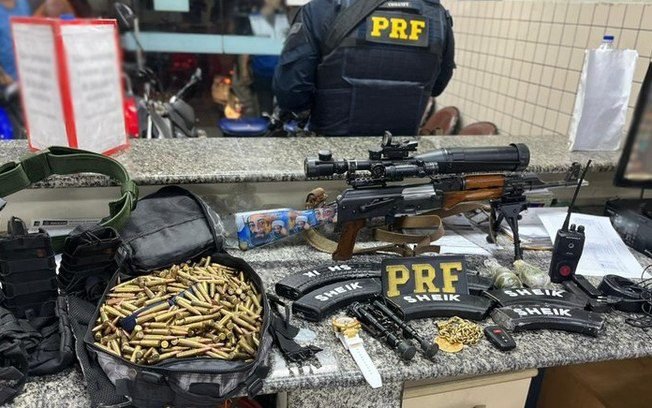 Durante a revista pessoal e a vistoria no interior do automóvel, os policiais encontraram um fuzil AK-47, oito carregadores, 616 munições de calibre 7,62, cinco porta-carregadores, dois bipés, duas granadas, uma mira telescópica, um rádio comunicador com base e duas baterias, além de um cinto tático.