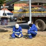 Duas equipes operacionais foram formadas exclusivamente para esse trabalho, cada uma com seis profissionais e estrutura pesada de caminhões. Enquanto uma frente atua na reposição dos cabos, a outra se dedica a concretar caixas de passagem, medida que dificulta novos furtos.