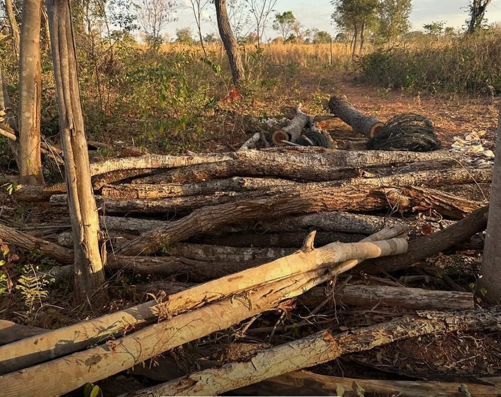 No local, também foram encontradas toras de madeira das espécies angico, jatobá, pau-d’arco e outras. Os materiais permaneceram no local devido à inviabilidade de transporte.