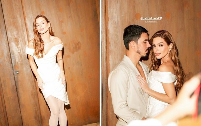 A atriz, que se casou oficialmente com Gabriel no Cristo Redentor no dia 21 de junho, voltou a usar um vestido da grife britânica Vivienne Westwood, desta vez um modelo curto de cetim de seda. Ela compartilhou os cliques da festa em seu Instagram.