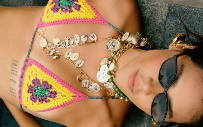 A atriz Giullia Buscaccio movimentou as redes sociais ao compartilhar uma sequência de fotos durante sua passagem por Taíba, no Ceará. Aos 29 anos, a artista apareceu usando um biquíni de crochê colorido, em registros que rapidamente chamaram a atenção dos seguidores.