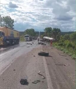 GRAVE ACIDENTE ENTRE CARRETAS DEIXA A BR-242 PARCIALMENTE INTERDITADA ENTRE A CIDADE DE BARREIRAS E CRISTÓPOLIS