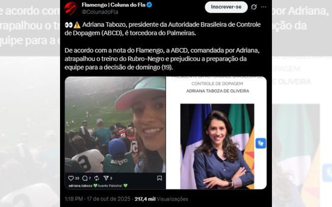 Indignados com a situação, torcedores do clube carioca foram à web e divulgaram uma imagem de Adriana Taboza, presidente da ABCD, no Allianz Parque com acessórios do Palmeiras, publicada em sua conta pessoal com a legenda “Avante, Palestra” (veja abaixo).