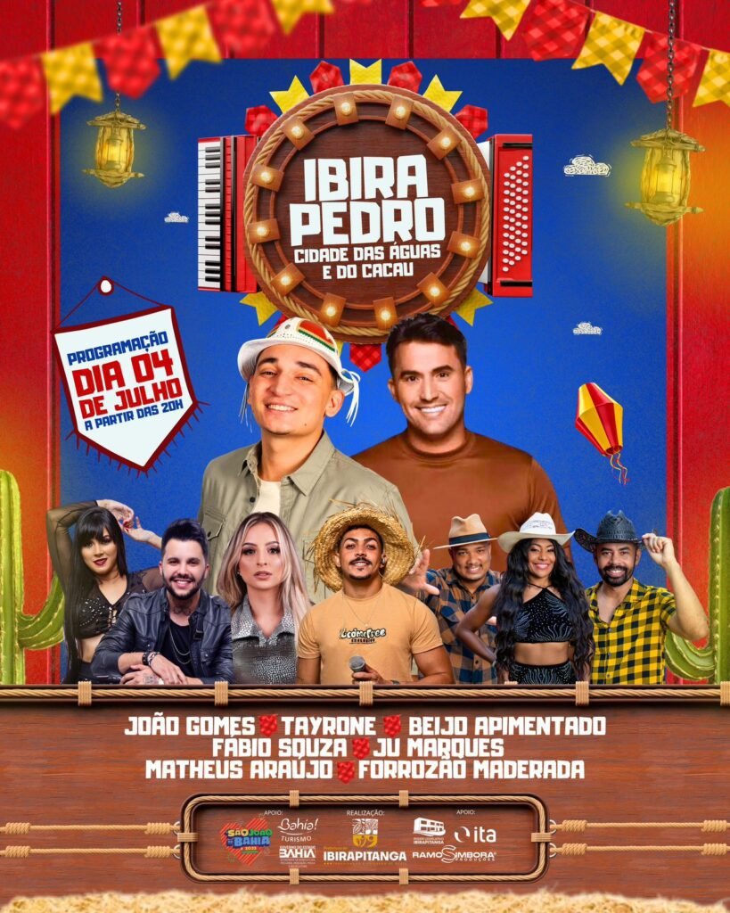 A Prefeitura de Ibirapitanga, a cidade das águas e do cacau, divulgou oficialmente, a grade completa e organizada por dia do IbiraPedro 2025, um dos maiores festejos juninos da Bahia. O evento ocorrerá nos dias 4, 5 e 6 de julho, na Praça de São Pedro, com expectativa de atrair cerca de 30 mil pessoas por noite. Este ano, a programação traz grandes novidades, como a realização do IbiraPedrinho, um espaço especial para as crianças, e a ampliação das ações de segurança, com a chegada do Centro Integrado de Comando e Controle Móvel (CICC-M), da Secretaria de Segurança Pública da Bahia (SSP-BA).