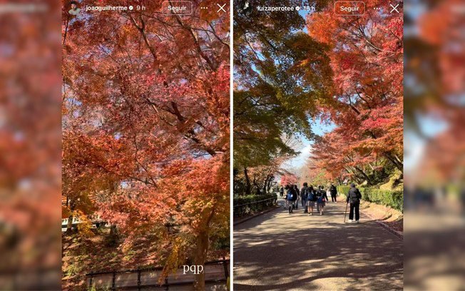 Uma das imagens, tirada em um parque de Kyoto, chamou atenção dos seguidores, que perceberam um detalhe curioso: a mesma paisagem havia sido publicada pela modelo brasileira Luiza Perote.