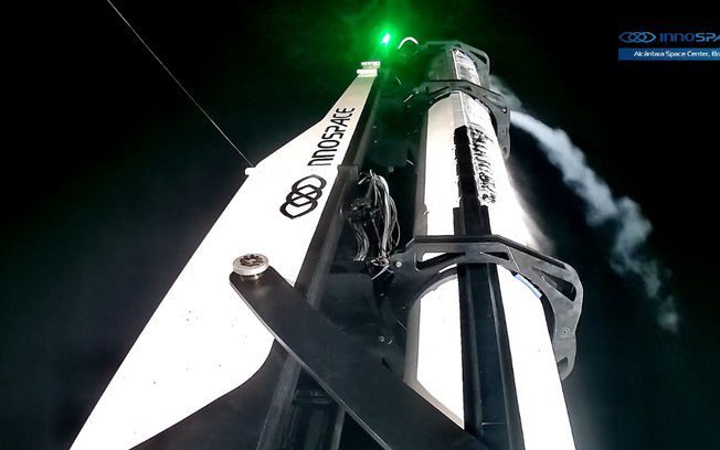 Foguete HANBIT-Nano, no Centro de Lançamento de Alcântara (CLA), no MaranhãoReprodução/INNOSPACE