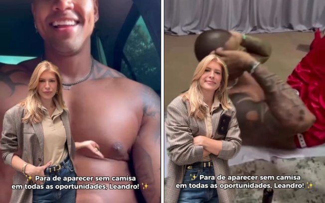 Enquanto a canção dizia “Fala o que tu quer, mulher, diz para mim”, Lore respondeu: “Para de aparecer sem camisa em todas as oportunidades, Leandro”. Na gravação, a bailarina fez caras e bocas assistindo aos registros do cantor de axé, que possui um físico definido e costuma sensualizar nas postagens.