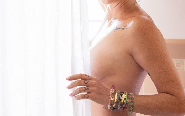 Nas imagens, Luana aparece nua no banheiro, com os cabelos amarrados e com as partes íntimas cobertas apenas por uma cortina semitransparente. Veja as fotos: